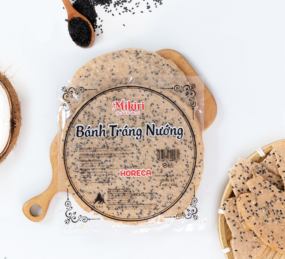 Bánh tráng nướng Mikiri là sự kết hợp khéo léo với những thành phần độc đáo giữa mè đen, cơm dừa và những nguyên liệu khác. Tạo nên miếng bánh giòn thơm vừa có vị béo béo của dừa, vị thơm nồng của mè và vị bùi ngon từ bột gạo. Hơn nữa, Mikiri ưu tiên dự tiện dụng đến tay người dùng. Vì vậy cung ứng dòng bánh tráng nướng đã được nướng sẵn. Chỉ cần mở ra và sử dụng là bạn đã có thể thưởng thức thứ bánh thơm ngon này.